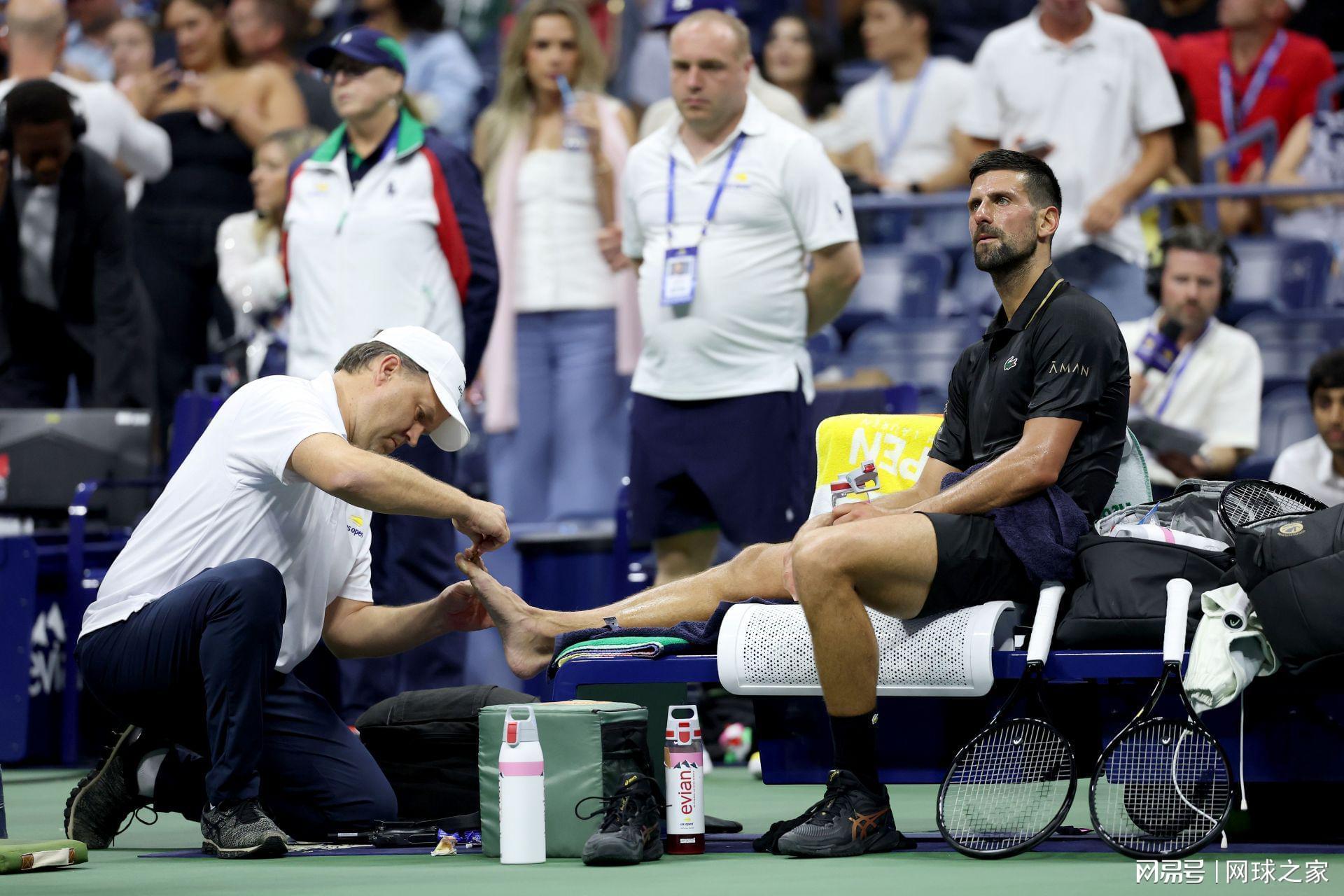 在第二盘结束后,德约科维奇叫来 ATP 随队理疗师克莱·斯奈特曼,为他右脚大脚趾重新贴上绷带,因为趾头已经流血。在比赛过程中,他还曾一度显得髋部不适,并多次将球拍举到头后,似乎是想吸入更多氧气。